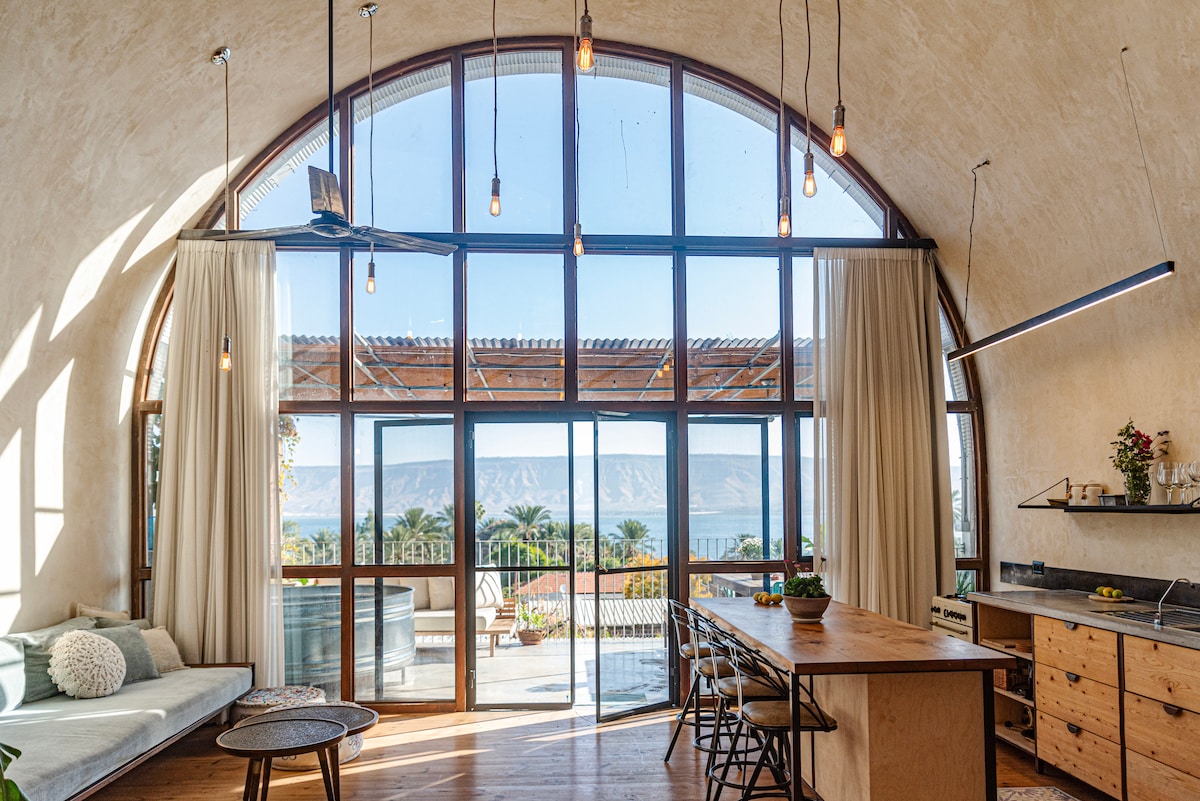 A geodesic dome located in an olive grove at the foot of the mountain in a private and quiet area. The house is wide, spacious, modern and special. There are strong ACs, a fully equipped kitchen, espresso machine, microwave, washing machine, an outdoor seating area with a BBQ, and a pool. The surrounding area is beautiful with natural springs and hiking trails. The Sea of Galilee is only a 10-minute drive away. This house was hand-built by us with love&care. We are happy to share it with you!
