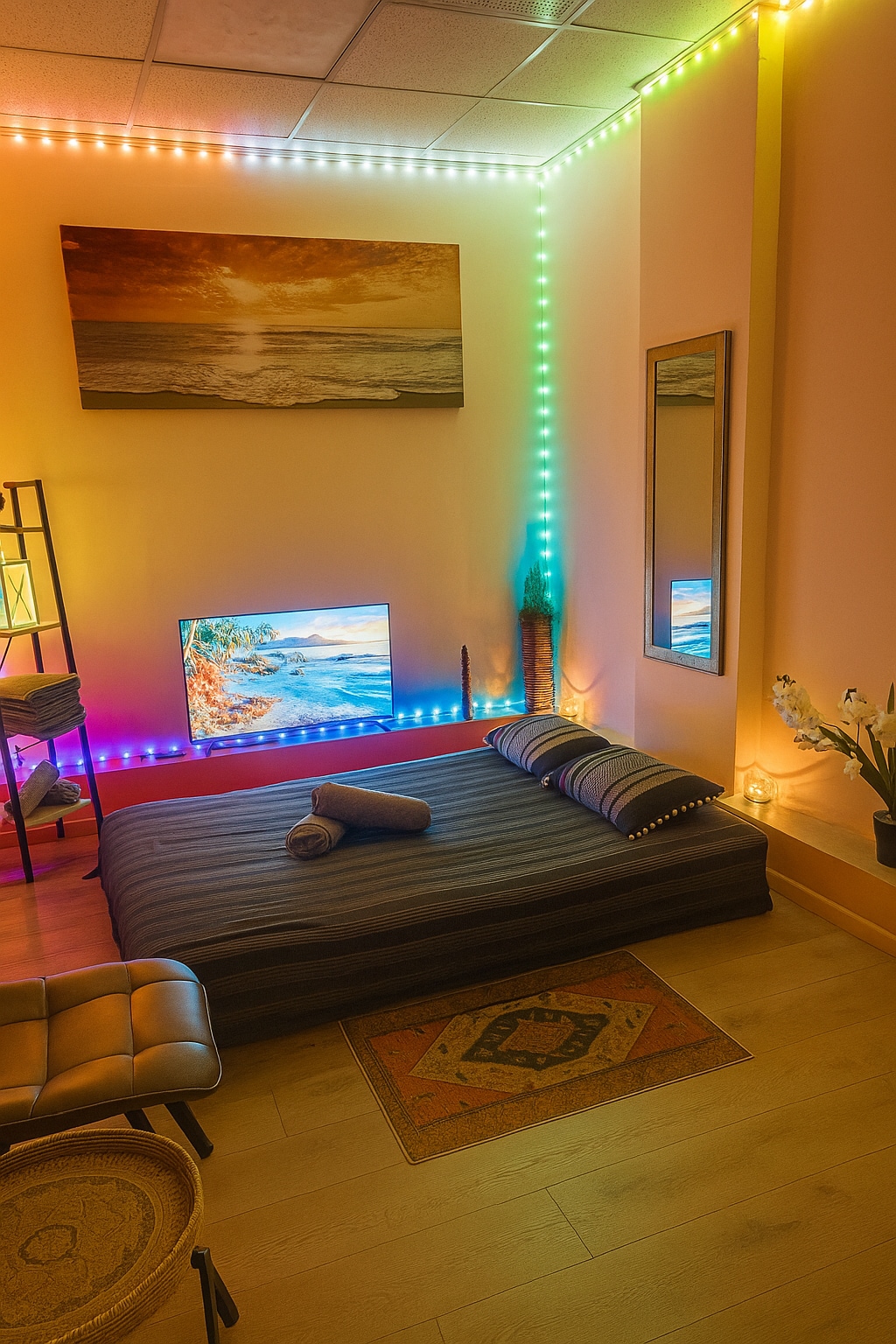 צימר קטן ואינטימי בעיצוב בהשראה תאילנדית, עם אווירה רגועה ואקזוטית. חלל חמים ומזמין, תאורה רכה ותחושת שקט מושלמת לחופשה רומנטית, רגועה ומנותקת מהשגרה