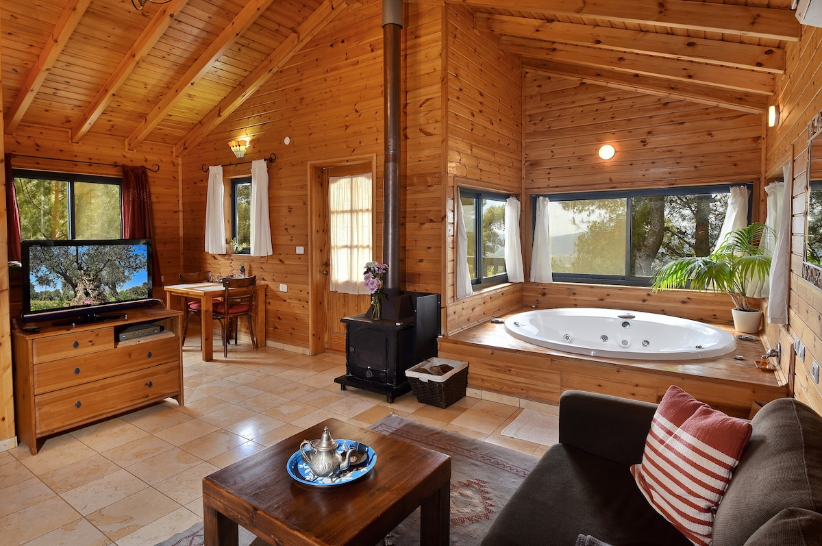 Welcome to Naomi’s House 🌿 Experience the magic of the Golan at our boutique cabin complex. Tucked away in a grove of olive and palm trees, our four cozy wooden cabins are the perfect spot to unwind. Enjoy your private deck, lounge on the hammock, or take a dip in our pool. We're just a heartbeat away from the Sea of Galilee and the best hiking streams in Israel. ✨ Private Decks | ✨ Shared Pool | ✨ Near Kinneret & Golan Streams