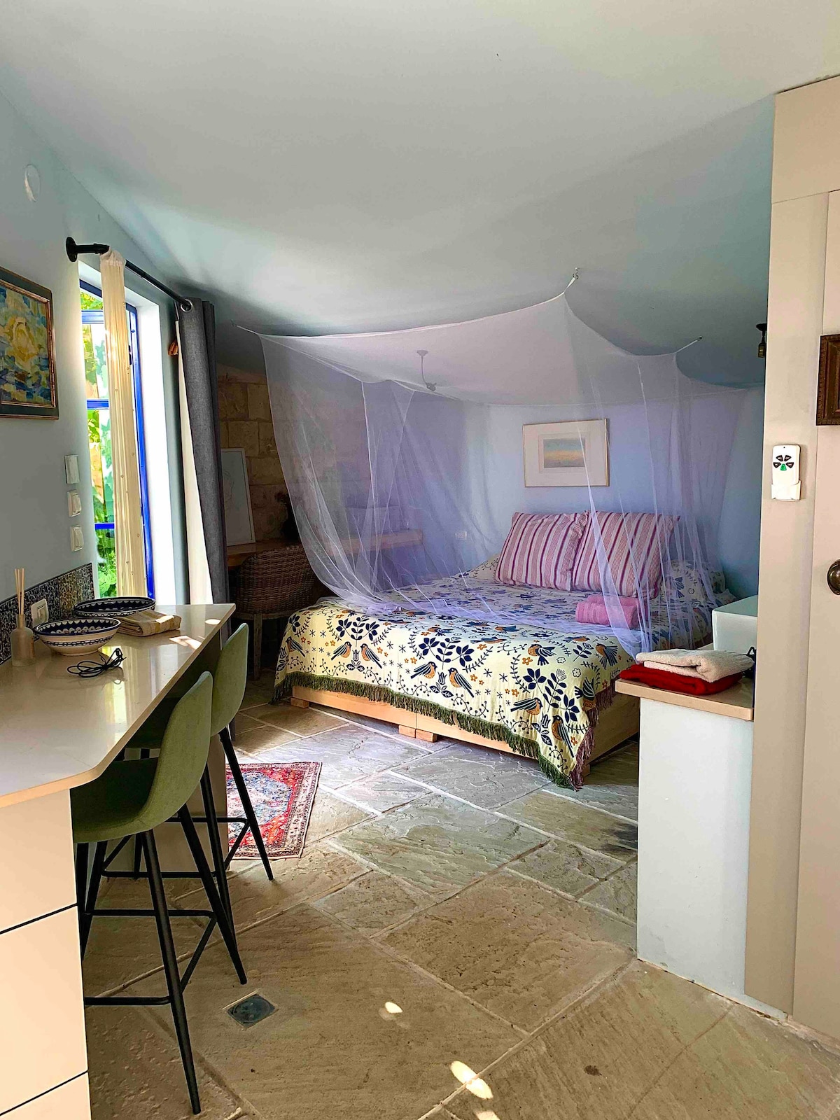 Welcome to Studio Apartment No. 9 in the "Bazelet Boutique" in Tiberias! This unique apartment is part of a complex with 7 distinct studio apartments, each uniquely designed, located on a quiet street, just a 5-minute walk from the city center and the Sea of Galilee. Ideal for couples or small families, it features a dining area, bathroom, and kitchenette. Only a minute’s walk to a synagogue.