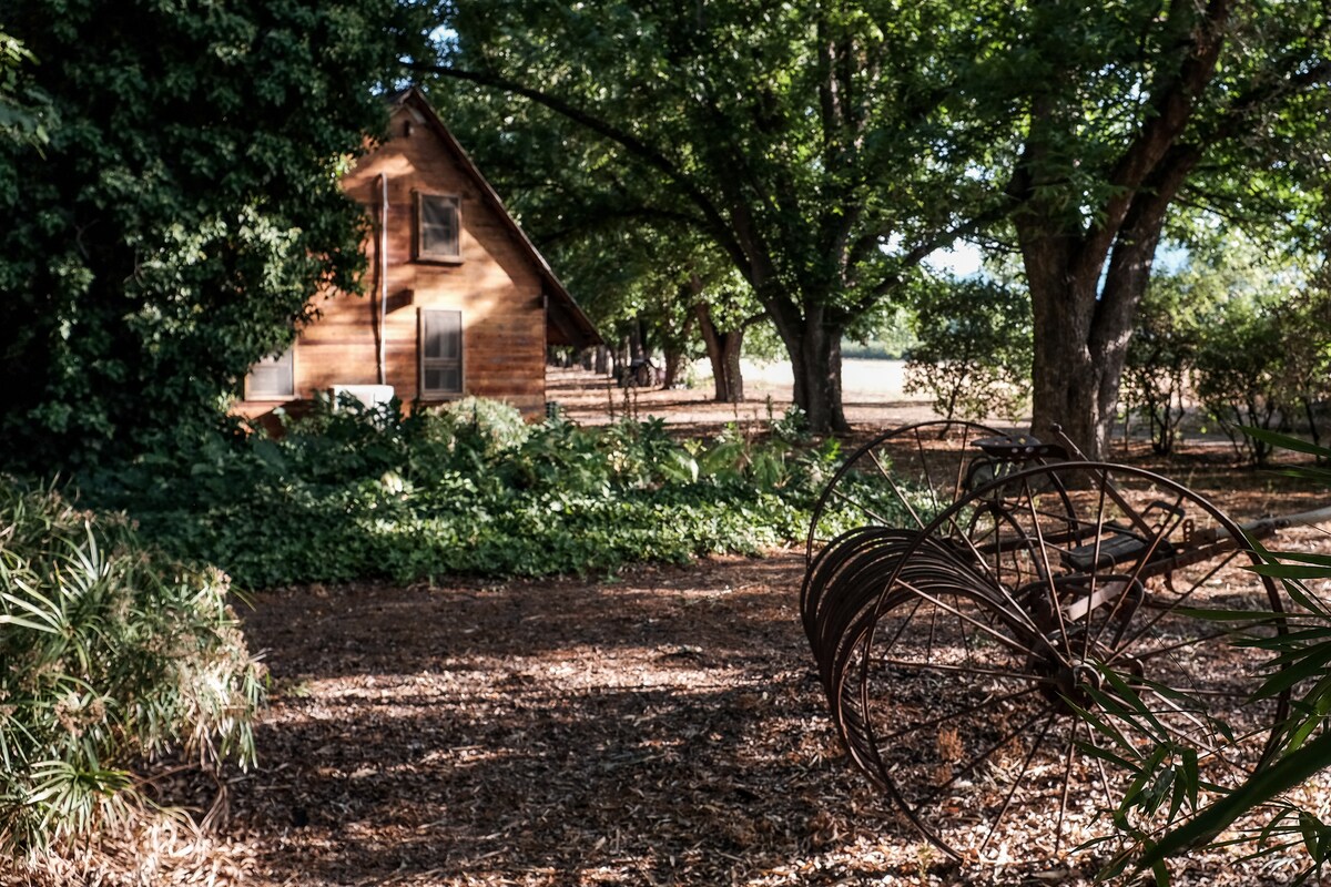 Two wooden houses built by Danny and Hava with great grace stand in a vast garden of huge plane trees and pecans. In the yard there are many useful sculptures that were designed with lots of humor from old objects and junk. The place creates a special atmosphere. Children are the target audience, as can be seen from the wooden house built on the top of a tree in the garden. On the lower level of the cabin there is a place for parents and a well-equipped kitchen. The upper gallery is for children