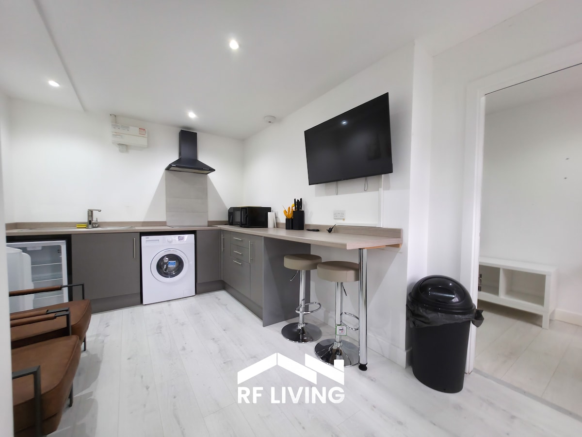 Modern, self-contained studio with separate entrance, lounge/sleeping area, kitchen and shower room. You also have access to a small garden with seating area. The perfect place for singles or couples to enjoy a night's stopover, weekend break or holiday in a vibrant seaside location. It's also ideal for trade & business trips. Located on a quiet street 12 mins walk from the beach/promenade and 15-20 mins from the town centre with bars, restaurants and visitor attractions. Free on-street parking.