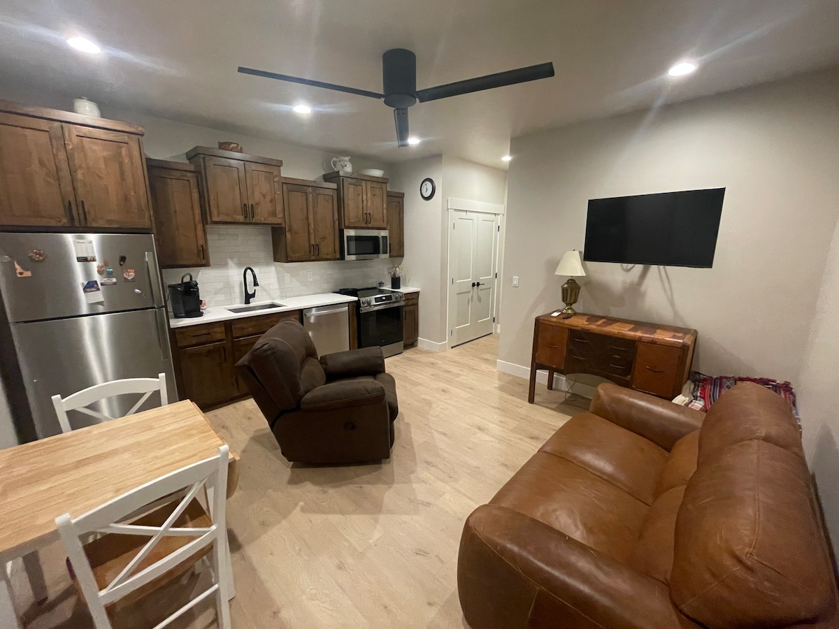This basement apartment is part of a home built in 1900. Recently remodeled, it has a separate bedroom, sitting room, kitchen area, and bathroom. One queen size bed and one sofa that converts into a queen bed. We can also provide a pack-and-play. Street parking available, or this house is a short walk to Hyde Park, Downtown Boise, Boise Foothills trails and Camelsback Park, St. Luke’s, and the VA. We are near the base of Bogus Basin, where great snow is just a quick drive up the hill.