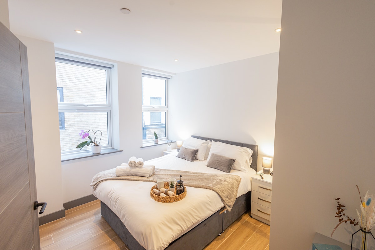 Beautiful 2B 2B flat where elegance meets modern luxury - designed with exceptional attention to detail throughout. Each element thoughtfully chosen — from premium appliances & glassware to soft furnishings & integrated technology to make your stay effortless. Egyptian cotton bedding, towels, & carefully selected décor create hotel-quality experience with the warmth and privacy of home. Whether enjoying the open-plan space or private outdoor terrace, it offers everything you need and more.