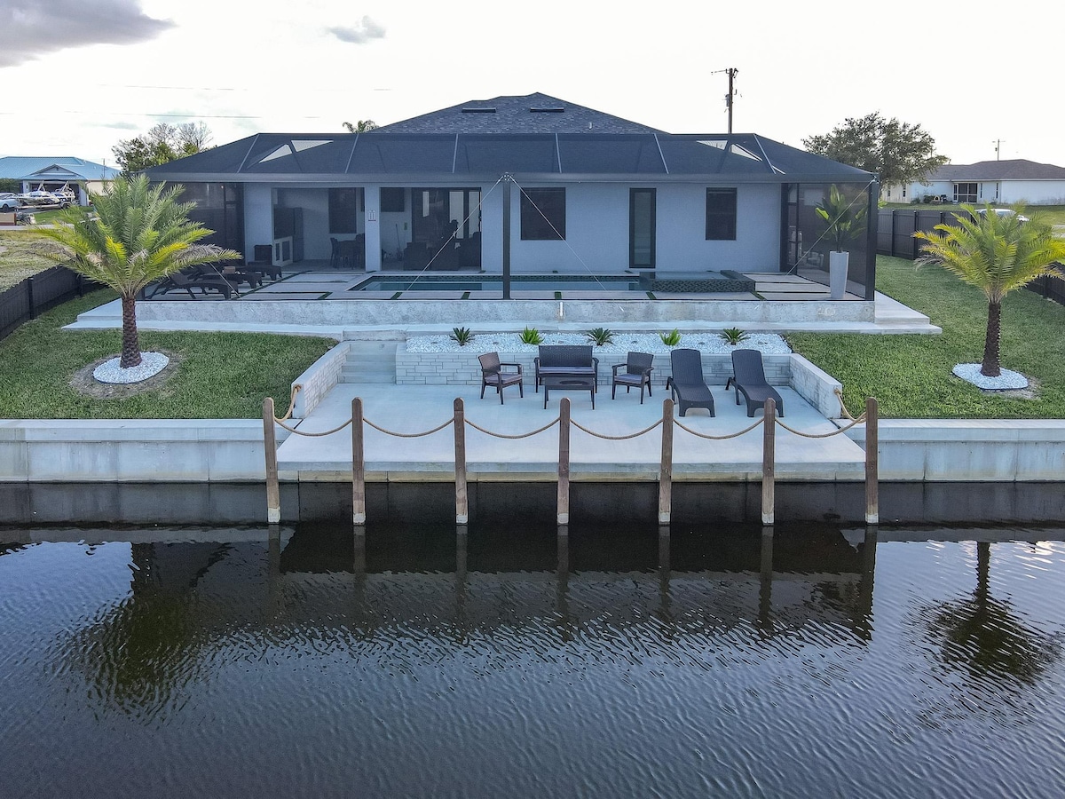 Welcome to your dream vacation home in sunny Florida! This luxurious retreat offers a spacious 4BR/3BA Cape Coral waterfront villa for 8 with a private pool, hot tub, chef’s kitchen, free parking, pet-friendly policy, and reliable Wi‑Fi—perfect for families, couples, business travelers, and remote workers. Casa del Lago is a luxurious waterfront getaway designed for those who seek both relaxation and indulgence.