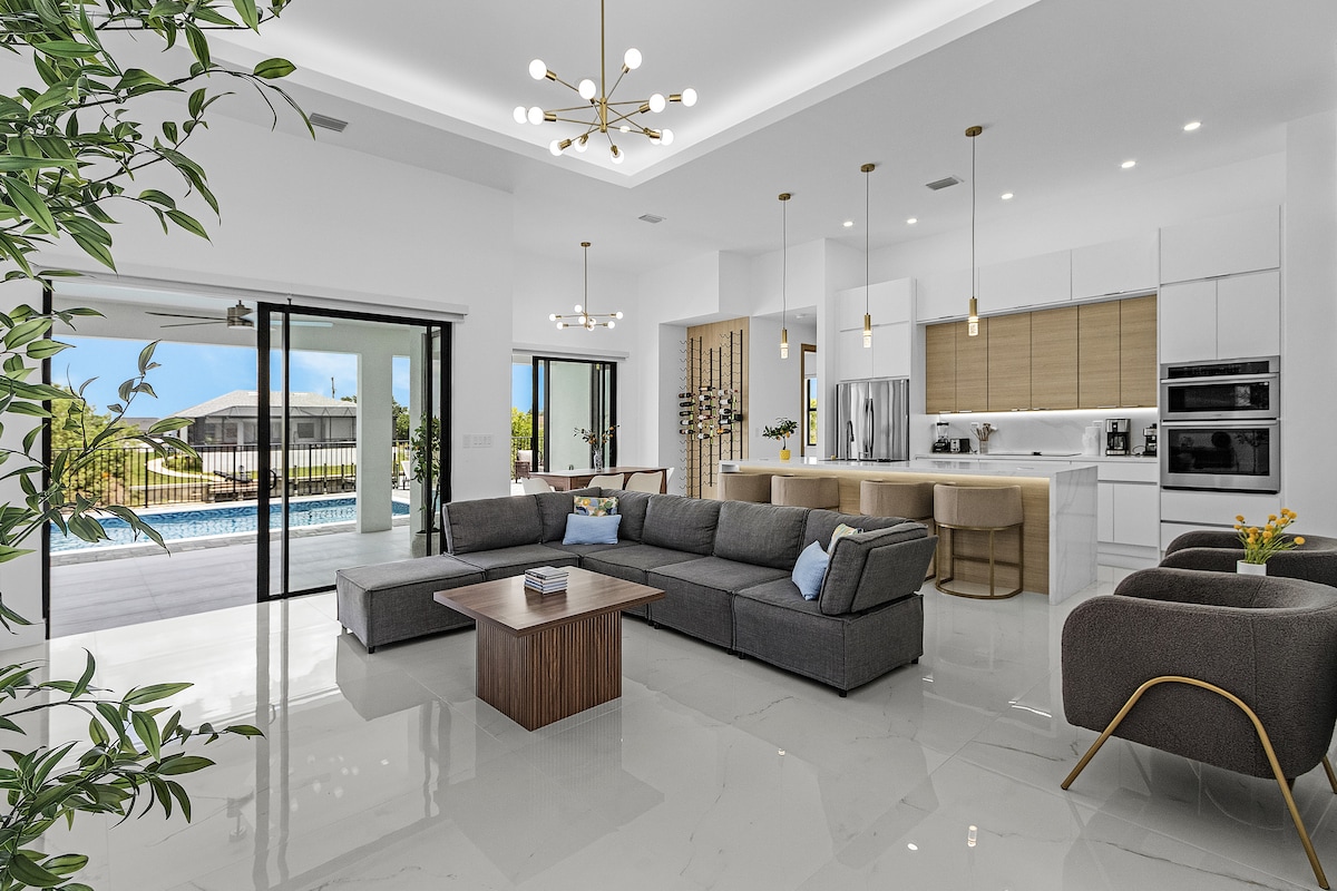 Experience Cape Coral like never before all from this gorgeous 3bedroom, 3bath villa. This elegant villa boasts a vibrant interior decorated with Italian furniture and fully equipped kitchen. Begin your day with a few laps in the private pool before heading to the Yacht Club Public Beach, Sun Splash Family Waterpark or Pine Island to soak up some sun! After adventurous days, continue making memories back home with a family barbecue and a soak in the hot tub or have a movie night with loved ones!