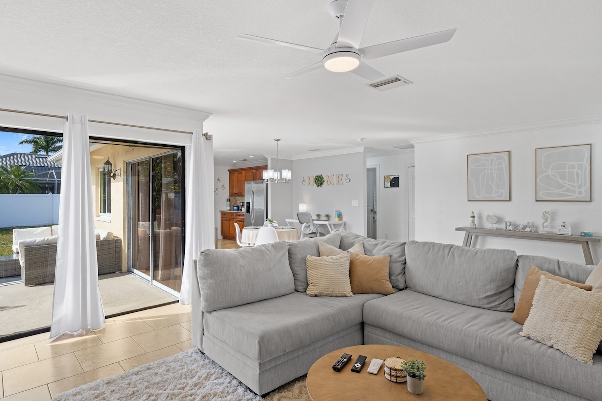 Escape to The Pomelo House, your perfect retreat in the heart of The Cape. This bright, stylish home features an open-concept living space, a master suite, two additional bedrooms, and two bathrooms. The fully equipped chef’s kitchen makes dining in a breeze. Step into your private backyard oasis with a screened lanai, grill area, and a heated pool (pool heat available for an additional fee). Close to top attractions and beautiful beaches, it’s the ultimate spot to unwind.