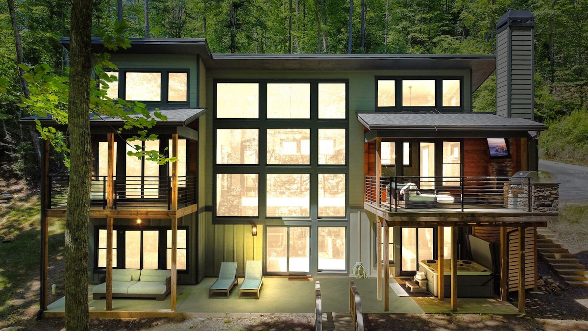 Discover a gem just 9 minutes from downtown Dahlonega:an all-glass cabin nestled on 3.5 private acres in the heart of wine country. Experience floor to ceiling woodland views from every room. OMG! Located in a renowned cycling area, pedal your way through scenic routes from the door. Only 6 miles from the iconic Appalachian Trail, it's a fusion of luxury and natural beauty. Dive into world-class vineyards or seek unlimited outdoor adventure. An unmatched haven in Dahlonega's serene woods awaits.