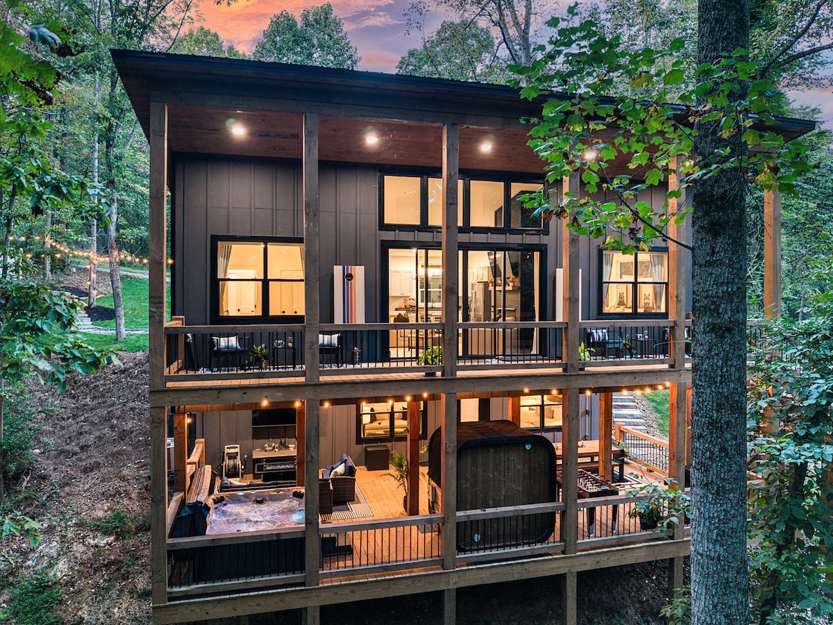 This newly built mountain home is tucked away in a quiet neighborhood bordering the Nantahala National Forest but just a ten-minute drive from downtown Franklin. Enjoy slow mornings on the wrap around deck while you take in the beautiful mountain views. Spend your days hiking, biking or fly fishing the numerous nearby trails and rivers. Then wrap up a perfect ending to your day in the hot tub or around a crackling fire watching the sunset.