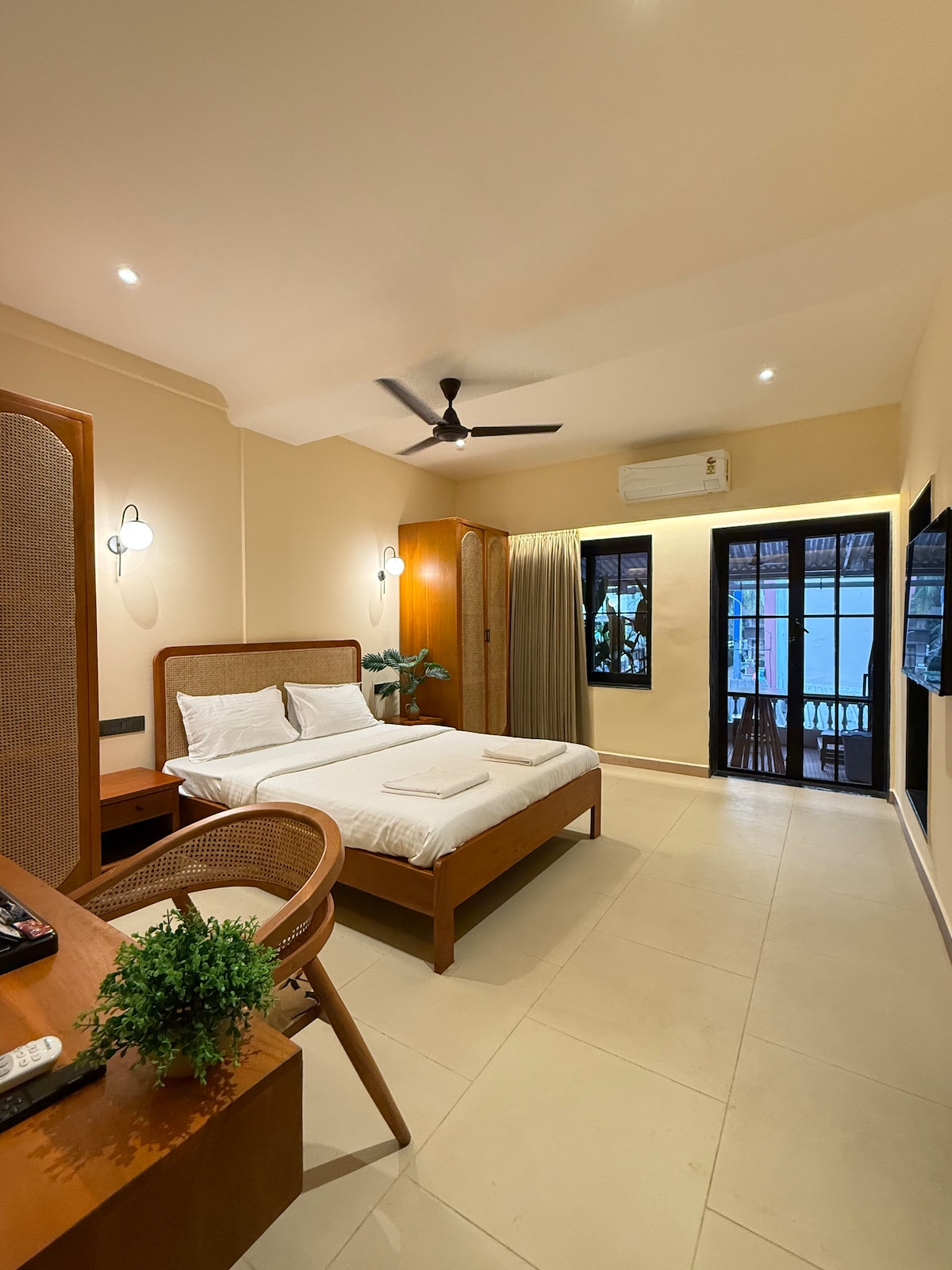 Our Signature Room is a design-forward space featuring a King bed, an open to sky bathroom, and a bathtub blending comfort with thoughtful aesthetics. The room is equipped with high-speed Wi-Fi, air conditioning, and a smart TV for a seamless stay. Located just 1.5 km from the beach and 900 meters from the local market, the property offers easy access while remaining a peaceful retreat. Our spaces are intentionally designed to foster community, creativity, and authentic travel experiences.