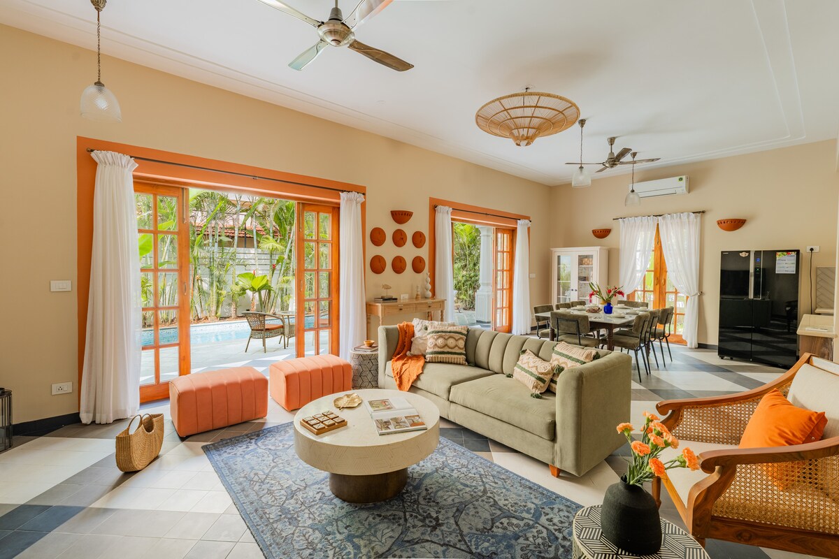 宽敞的2卧室Candolim |泳池•步行即可抵达海滩•