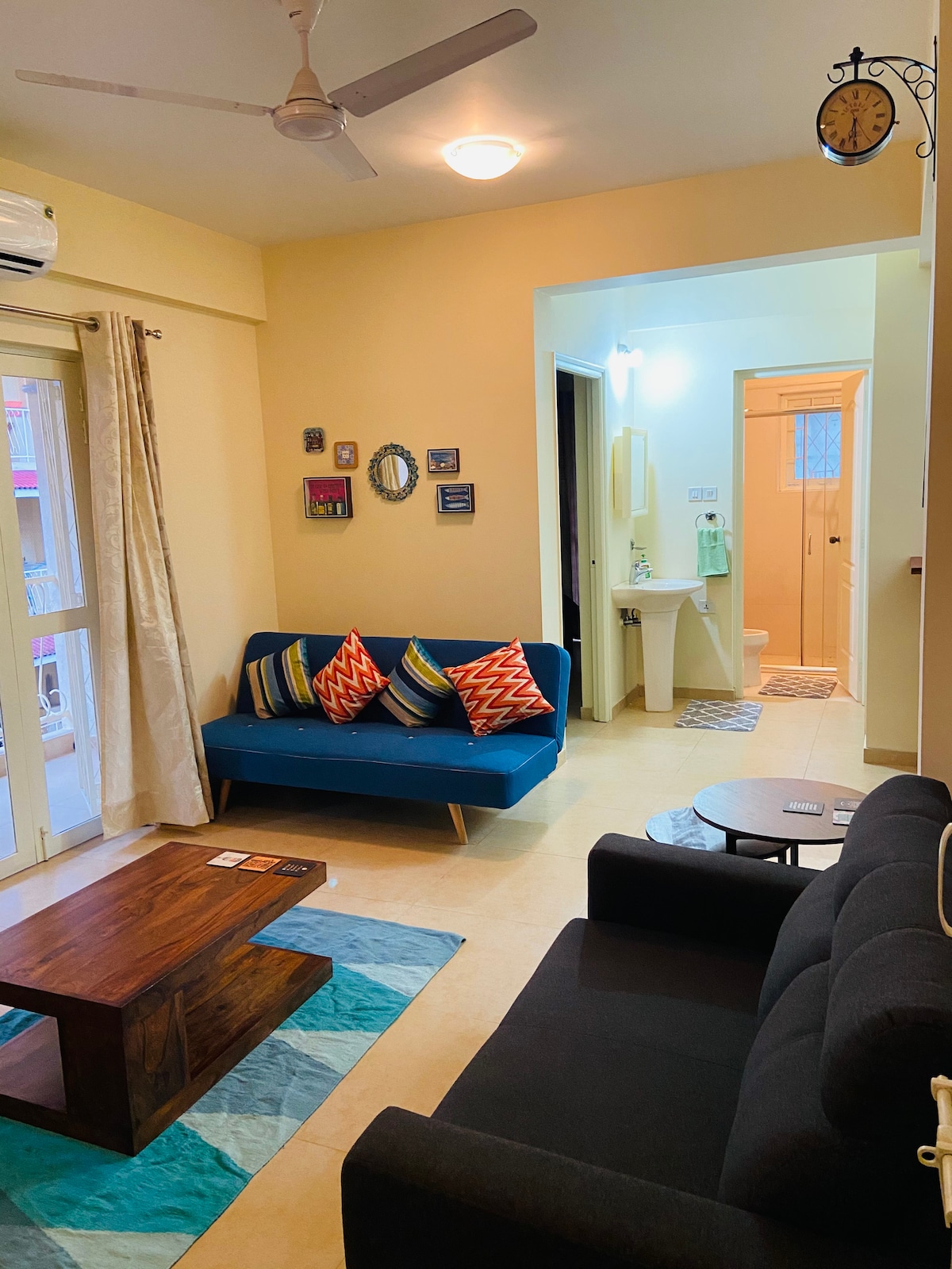 This cozy &luxury Ground floor fully furnished 1BHK is located in Assagao , North Goa in a gated community with 24*7 security guard and daily housekeeping . Flat is just 10 minute drive from Anjuna and vagator beach and next to Soros -the village pub. The apartment has two WiFi high speed internet connection,fully functional kitchen, swimming pool , free parking ,inverter& washing machine. Walking distance from Pablos , Atjuna and just 5-7 min drive to Bawri , jamun , Mustard cafe