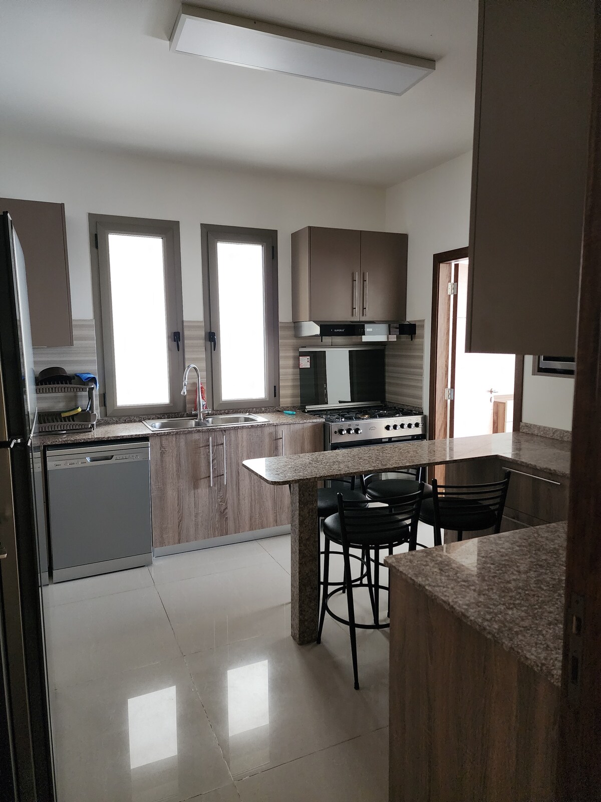 Spacious 237 m², 3-bedroom apartment in a gated building with 24/7 security and two free parking spots. Across from Spinneys & McDonald’s, next to Sport District Gym, and a 5-min walk to Dam & Farez’s lively café street. Enjoy 24/7 power with solar energy, ultra-fast WiFi 7, and LG AC units in every room. Modern, secure, and perfectly located—ideal for families, groups, or business travelers. Book your stay today.