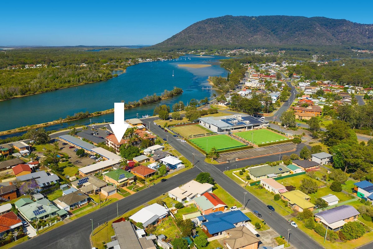 Stylish modern self-contained unit adjacent to the river, enjoy the water views from your private deck. Located just a short walk to cafes, restaurants, club and pub. 5 minute drive to beaches. Unit has free wifi, Netflix, dishwasher, under bench fridge and freezer, microwave, oven and cooktop. Tea, sugar and pod coffee system provided. Private bedroom with queen bed, bathroom separate toilet. Fans in every room with air-con throughout. Linen, hair-dryer, iron and ironing board provided.