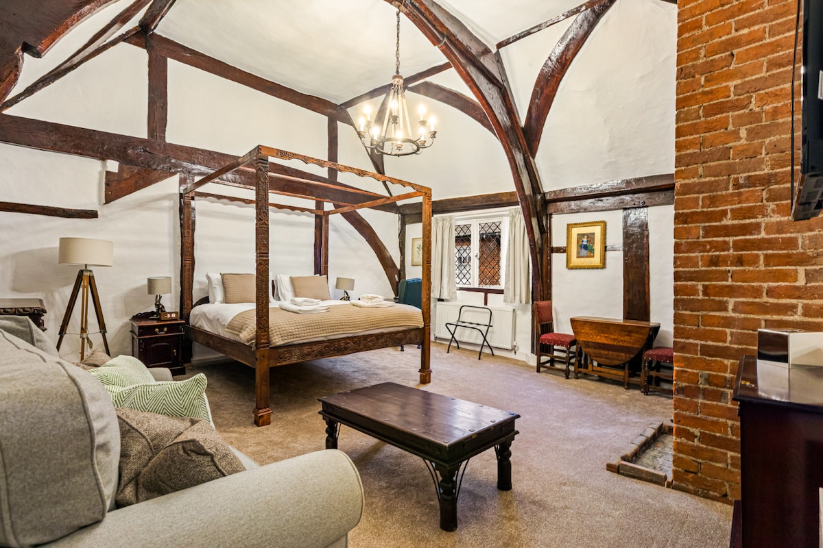 Our Suites at Woodland Manor Hotel are individually decorated with large seating areas, private en suites with views out to our grounds. Each room has fresh quality linen and towels. This beautiful suite boasts a four-poster bed with fantastic views of the garden and woodland.