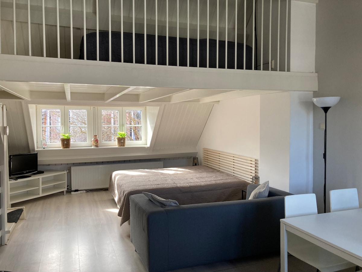 A very cozy self-contained studio, right in the center of Hilversum. We are 5 min walk from the shopping area and station and 20 min from Amsterdam by train. We offer a quiet private loft bedroom (Dutch style) with double bed. On the lower floor is a private bathroom with toilet, a living room and an area for tea/coffee/ microwave. Television and WIFI are available. Our neighbourhood hosts many excellent bars/restaurants and just around the corner there's a great forest for nice walks.