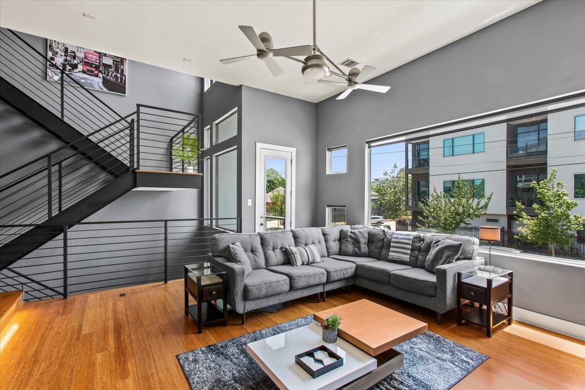 WIDE OPEN SPACE (3 STORY 2600SF) 24/7 Self check-in Amenities: 20ft floor to ceiling windows 120" projector Hi-speed wifi 2nd Story Balcony overlooking Downtown Big Chef's Kitchen Make a cocktail in the minibar and swing in an oil barrel while watching the sunset over downtown. Walk to Minute Maid, Toyota Center, PNC Stadium, Discovery Green, Hilton Americas & George R. Brown Convention Center in minutes! Enjoy attractions like 8th Wonder Brewery, Graffiti Park, Chapman & Kirby + many more!