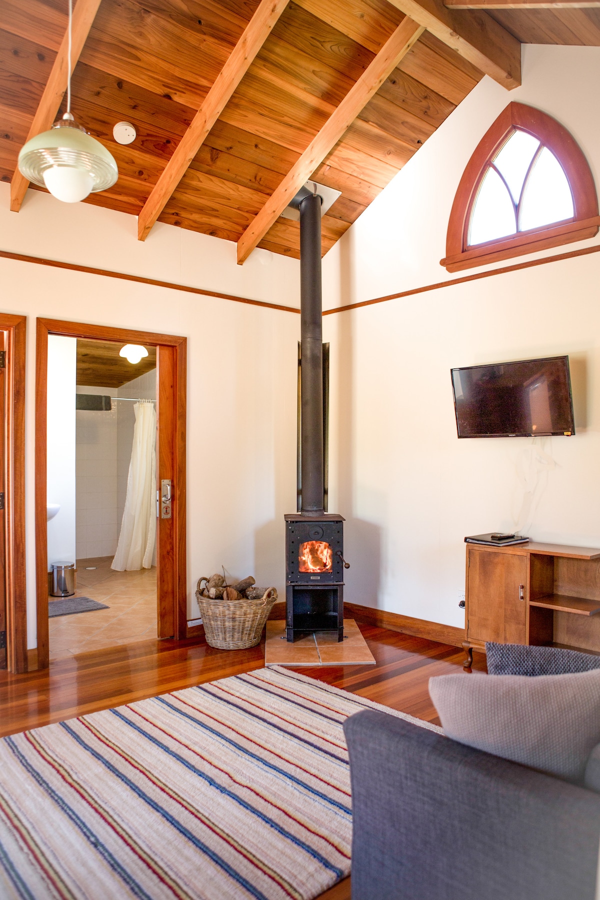 带有木柴火炉的教堂自给式乡村小屋