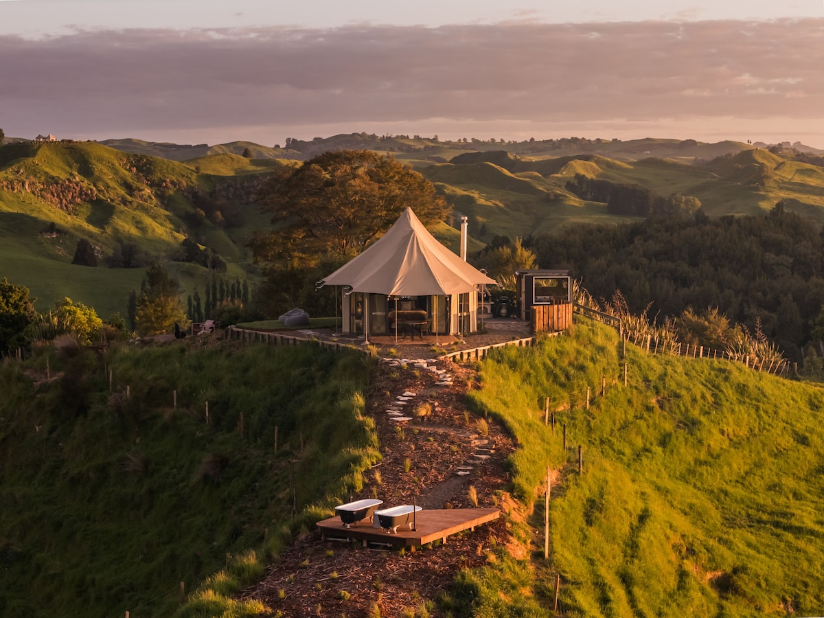 Experience a relaxing Raglan getaway - glamping style! Treat yourself to time in our luxurious tent, with all the amenities you need to relax and unwind. A private space to sit back & sip a glass of wine while toasting marshmallows around the fire pit, before enjoying a relaxing spa under the stars. Set on a peaceful rural farm with friendly alpacas nearby, only 8 minutes drive from Raglan township. Leave feeling reconnected & refreshed after a break away from your busy everyday life.