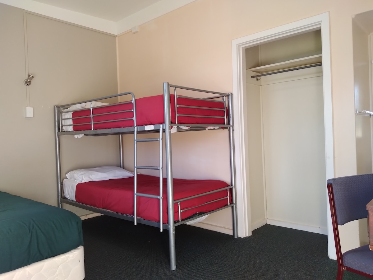 This private, self-contained 1-bedroom hostel unit with ensuite shower/toilet is ideal for travellers on a budget who also seek privacy. Linen is provided on 1 Queen bed & 1 Single bed. Features include: FREE WiFi, Freeview TV, aircon/heat pump, kitchenette with cooking facilities, dining table & chairs, lounge area, private ensuite shower/toilet & FREE car parking close to the unit. (Max 3pax/2 beds)