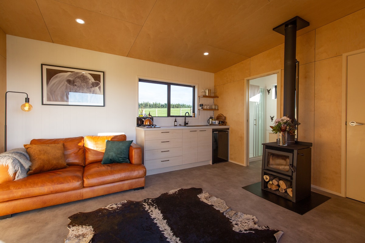 The hut is a beautifully crafted off the grid cabin located located on a sheep and beef farm, Daisybank, just minutes out of Martinborough . Open the doors right up on a nice day and enjoy the fresh air or cozy up with a blanket on the couch in front of the fire when the weather makes you want to bunker down. The outdoor bath is the icing on the cake to allow you to take in the views while relaxing in the tub