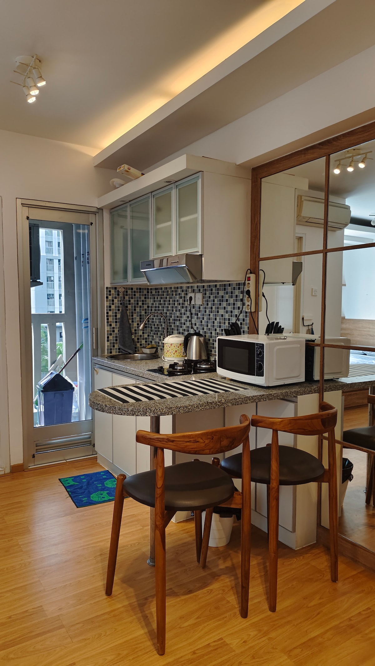 Make some memories at this unique and family-friendly place. Enjoy our very first little space that designed with modern style and comfort. This 2 bedroom apartment has been made into spacious studio apartment with 1 extra bedroom. Everything made with premium materials and we hope you enjoy your stay and love it too!