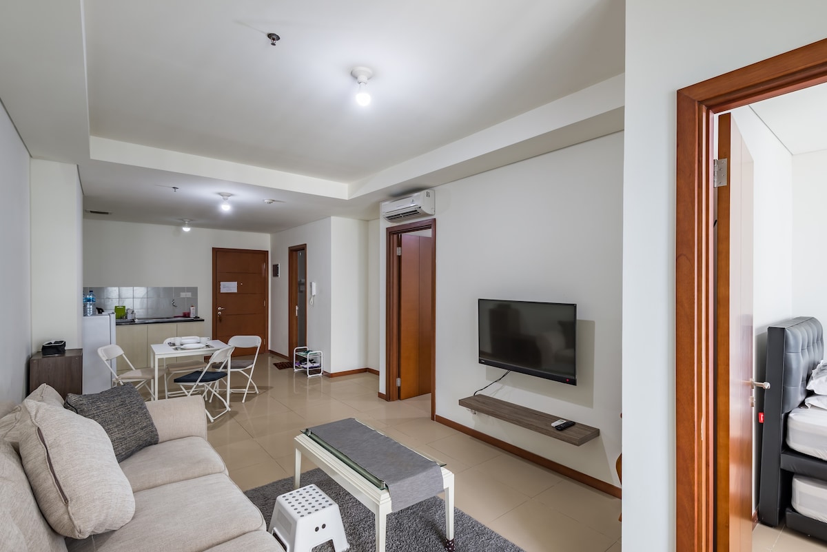 Cozy & Inviting Stay with city view in a Prime Location! Stay in this comfortable 2BR apartment on the 19th floor, ideal for couples, families, travelers, or business trips. Conveniently located next to Mall of Indonesia, where you can dine, shop, or enjoy a movie. • Common swimming pool for relaxation • Fully equipped kitchen for home cooking • Free Wi-Fi & TV cable for entertainment • Complimentary drinking water & essentials Enjoy a pleasant stay with great service at a fantastic value!