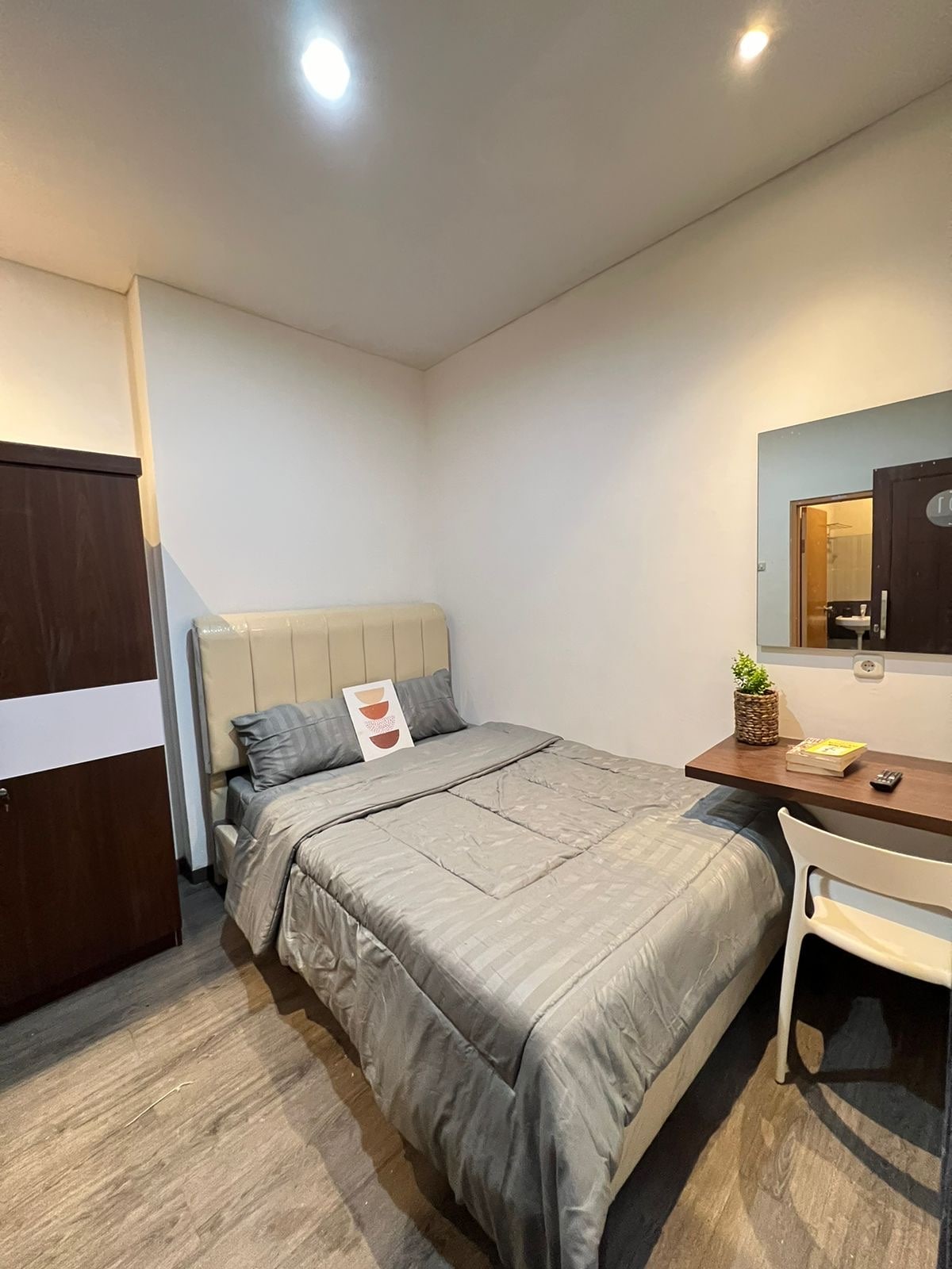 Hunian nyaman di tengah kota Jakarta. Lokasi strategis dekat jalan besar dan kendaraan umum. Koridor yang terang dan sejuk dengan sirkulasi udara yang baik, cocok untuk bersantai dan beristirahat. Kamar minimalis berukuran 9 meter persegi yang tetap terasa luas meski dengan perabotan lengkap, seperti meja kerja, lemari, dan kamar mandi dalam. Tersedia juga tong sampah dan jemuran di setiap kamar.
