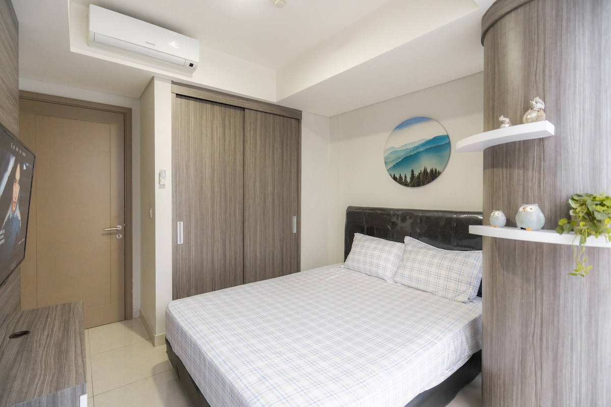 Experience comfort and style in our 2BR apartment located in the heart of Jakarta —just steps away from 4 bustling shopping mall (2 connecting malls). Designed for comfort for your family or travelling buddies, the apartment features a cozy yet stylish interior, high-speed Wi-Fi and five-star clubhouse for you to spoil yourself in.