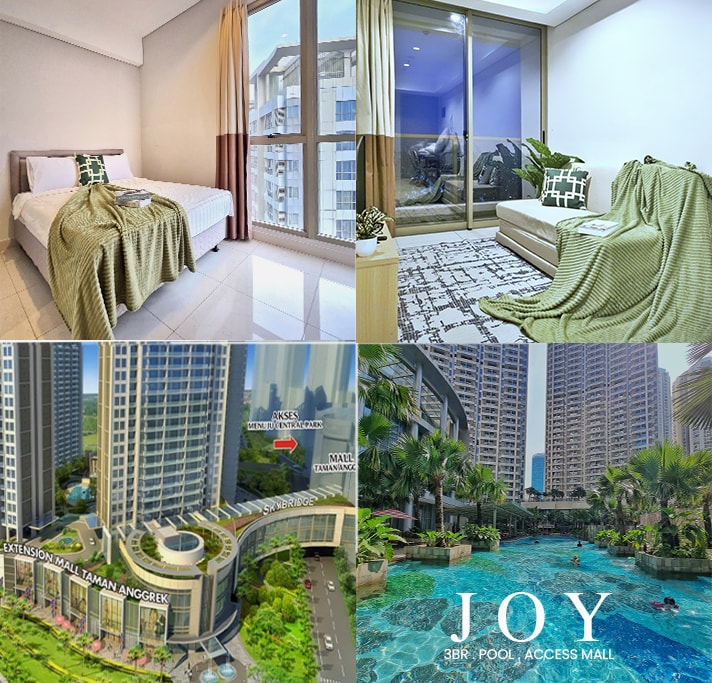 Taman Anggrek Residence located at the heart of Jakarta, we provided the luxurious yet comfortable stay for 3 persons This is 1 BR type (38 sqm) with Sofa bed at Living room + Sky bridge to Taman Anggrek Mall & Hublife Mall + Walking distance to Central Park Mall, Neo Soho, Ciputra Mall + Close to highway + Close to Hospitals