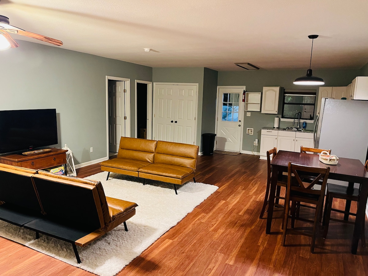 Experience cozy elegance in our 1-bedroom unit, featuring a full kitchen with granite countertops, a plush bed promising restful nights, and a charming living space. Perfect for solo travelers or couples seeking a tranquil escape. If only driving through for the evening, it's a quick 5 minute drive from the interstate--making it easily accessible. Welcome to a piece of our past with all the comforts of home. Your retreat awaits!