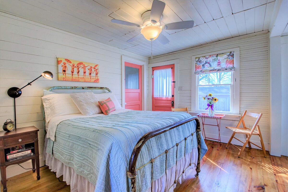 This is a small, cozy, safe, clean, and fully restored one-bedroom 1926 cottage in the backyard of a home in the Historic Hillcrest Neighborhood. It is perfectly designed for 1 guest or a couple; has its own kitchenette, a full-sized bed, and a 100 year old footed tub w a shower. Guests must walk up 3 steps without a handrail to get into the cottage. Must be 21 or older to book. A cot can be brought in upon request but it is a tight fit. Please see photos with cot in space.