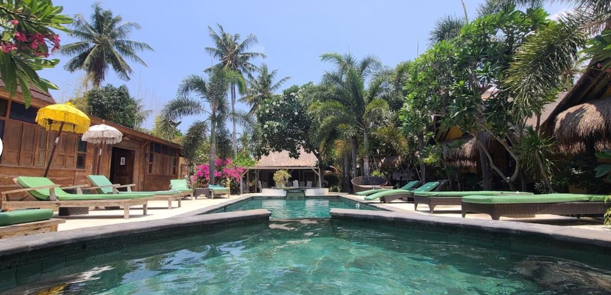 Welcome to The Gili Beach Resort Villa 3! Experience the ultimate comfort and luxury of our 4 bedroom villa, located 50 meter from the beach. The villa stands behind our beachfront villa with a pool view. Unwind in your private pool and indulge in a delicious breakfast prepared by our dedicated staff. Create unforgettable memories on Gili Island with our impeccable sanctuary. Book now for extraordinary holidays! Limited availability, act fast!