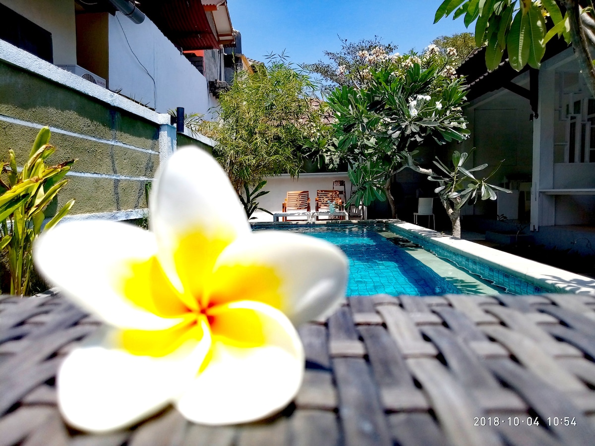 Blue skies. Green Coconuts. Blue waters all around. Welcome to Gili Air! Taman Senang is your perfect paradise to rest and recharge. Each of our 3 Deluxe Rooms features direct pool access to the shared pool. The rooms are equipped with a king size bed, a high quality interior with AC, TV, fridge, WIFI and an outdoor bathroom with a fresh and hot water shower. Our team is available 24 h to ensure a perfect stay. Daily breakfast and housekeeping is included in your stay.
