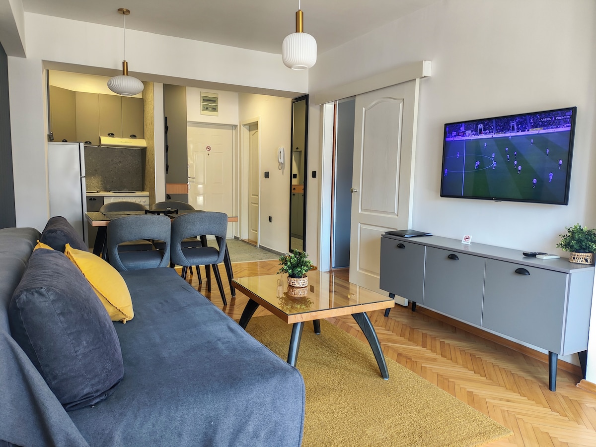 Perfect Location. Modern Design. New Apartment. FREE Parking included in the price. This is a new cosy apartment where you can enjoy your holiday. Placed in the heart of Ohrid around us is basically everything as we described in our "neighbourhood" section. Lake Ohrid is about 100m, and the nearest city beach is a 10-minute walk. The central bus station is situated a 10-minute drive, and Ohrid International Airport is reachable within 15 minutes by car.