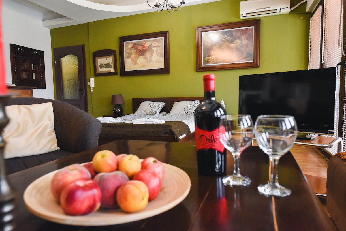 Nestled in Matka's oak forest, Canyon View Lodge offers the best, well, canyon view. The Comfort Apartment is our most spacious, private, and well-equiped unit, a great option for those who want the comfort of home while enjoying Matka's treasures: from the cliffs and greenery, to the river and the hidden churches. The property is only directly accesible high-clearance vehicles, otherwise people need to do a small hike to get up—but the jaw-dropping view is worth it!