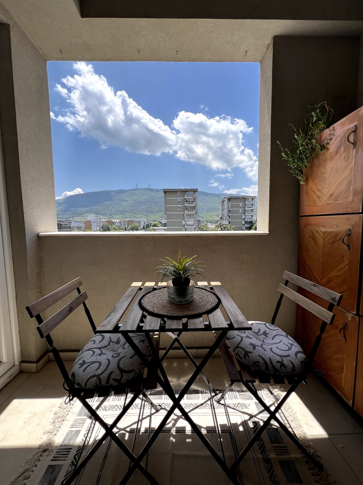 Artistic loft with panoramic views and private balcony! Located in Debar-Maalo, the heart of Skopje, walking distance to Boemska Street, Central Park and Main Square. Equipped with modular furniture, wall art and fully prepares for a relaxing stay: • 1st floor - living room & kitchen • 2nd floor - bedroom, gallery & balcony • Wifi & Smart TV • Two Toilets • Laundry & dishwasher Ideal for: couples, solo travelers, business stays or weekend getaways. You can hear the city noise on weekends.