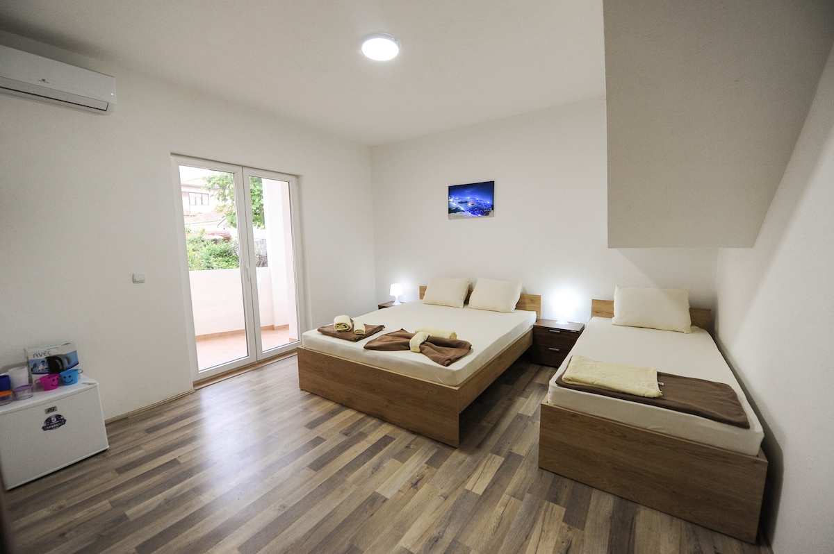 Stella apartments are situated in the city center of Gevgelija. They are two kilometers from the Greek border and 30 kilometers from the ski center Kozuf. There are 4 apartments from which 2 are fully equipped with a kitchen bar and tools and the other two have a mini bar. Each room has a separate bathroom and a balcony. Free parking is also provided as well as WI-FI, LCD TV and air conditioners. The rooms are comfortable and sparkling clean.