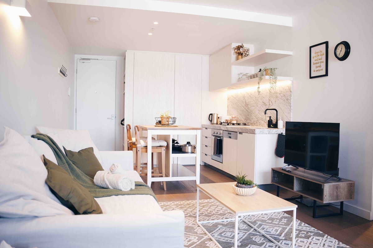 Welcome to our cozy and airy apartment in North Melbourne, proudly hosted by Airscape Homes. This stylish and modern apartment offers a blend of thoughtful design and luxurious furnishings. Located just 12 minutes from the CBD with a tram stop conveniently at the doorstep, it’s the perfect home for families, groups, or business travelers. Situated in the heart of North Melbourne, this sought-after apartment tends to book up quickly and is sure to leave a lasting impression.
