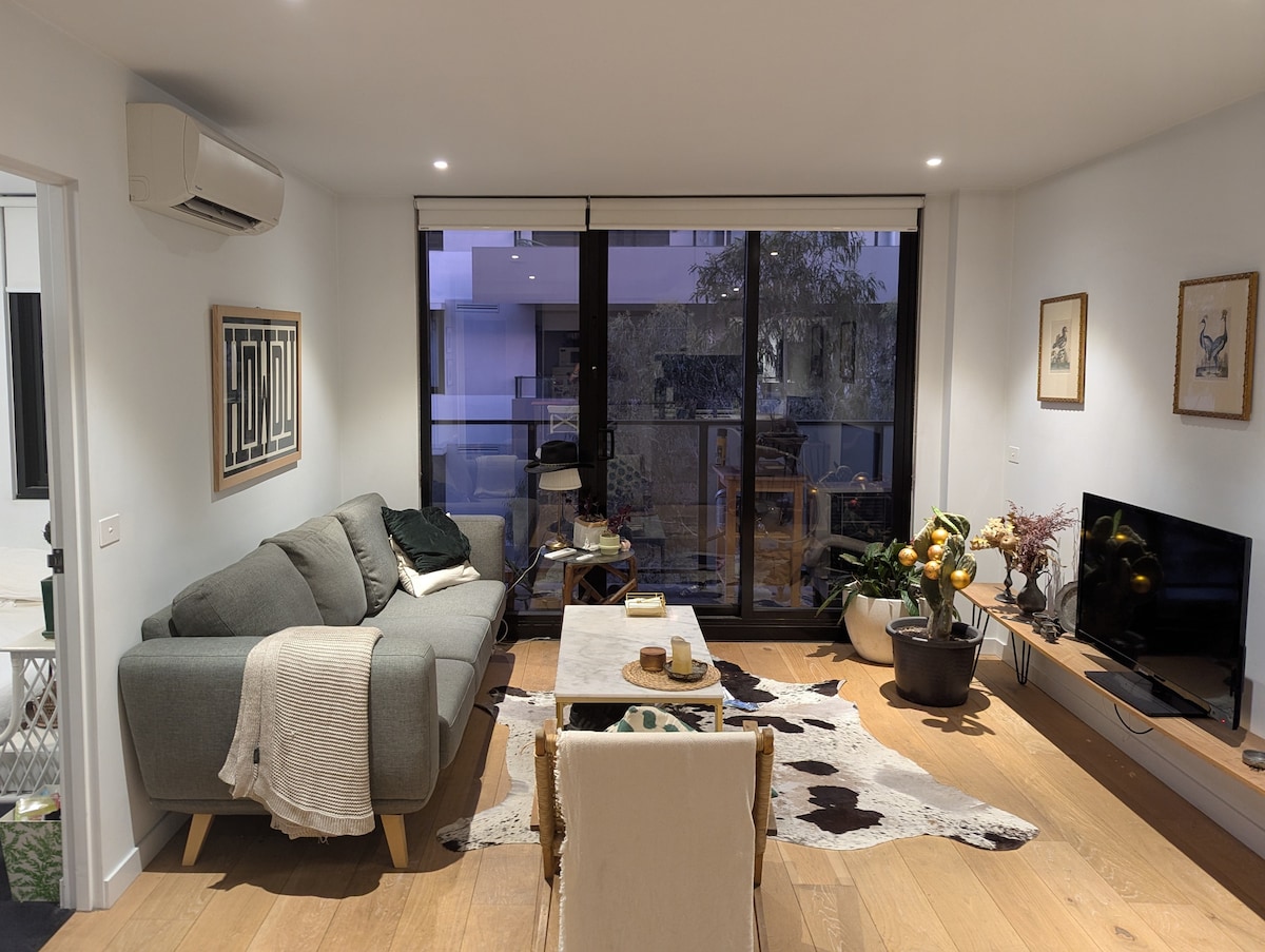 Step inside to be greeted by an open-plan living area adorned with stylish wood furnishings and industrial accents. High ceilings and large windows flood the space with natural light, creating a warm & inviting atmosphere. Wander outside to our big balcony with ample space for family to mingle. The District shopping center is just a stone's throw away, offering supermarkets, restaurants, retail and entertainment. Frequent tram service just downstairs connects you to the rest of the vibrant CBD.