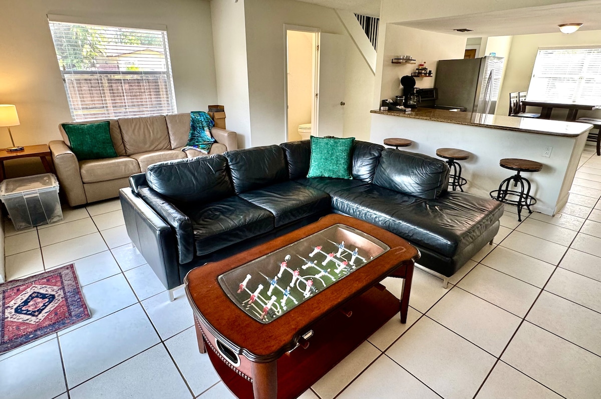 Just 8-min drive to the beach! This delightful, inviting townhouse was built in 2022. Beautifully decorated, this home has brand new appliances and furniture. There are two parking spaces for the exclusive use of our guests, a laid-back private patio with a gas grill, and a balcony on the master bedroom -which has a king-size bed- where you can enjoy your morning coffee and relax. This house is conveniently located (check the last picture for driving distances). This home does not disappoint!