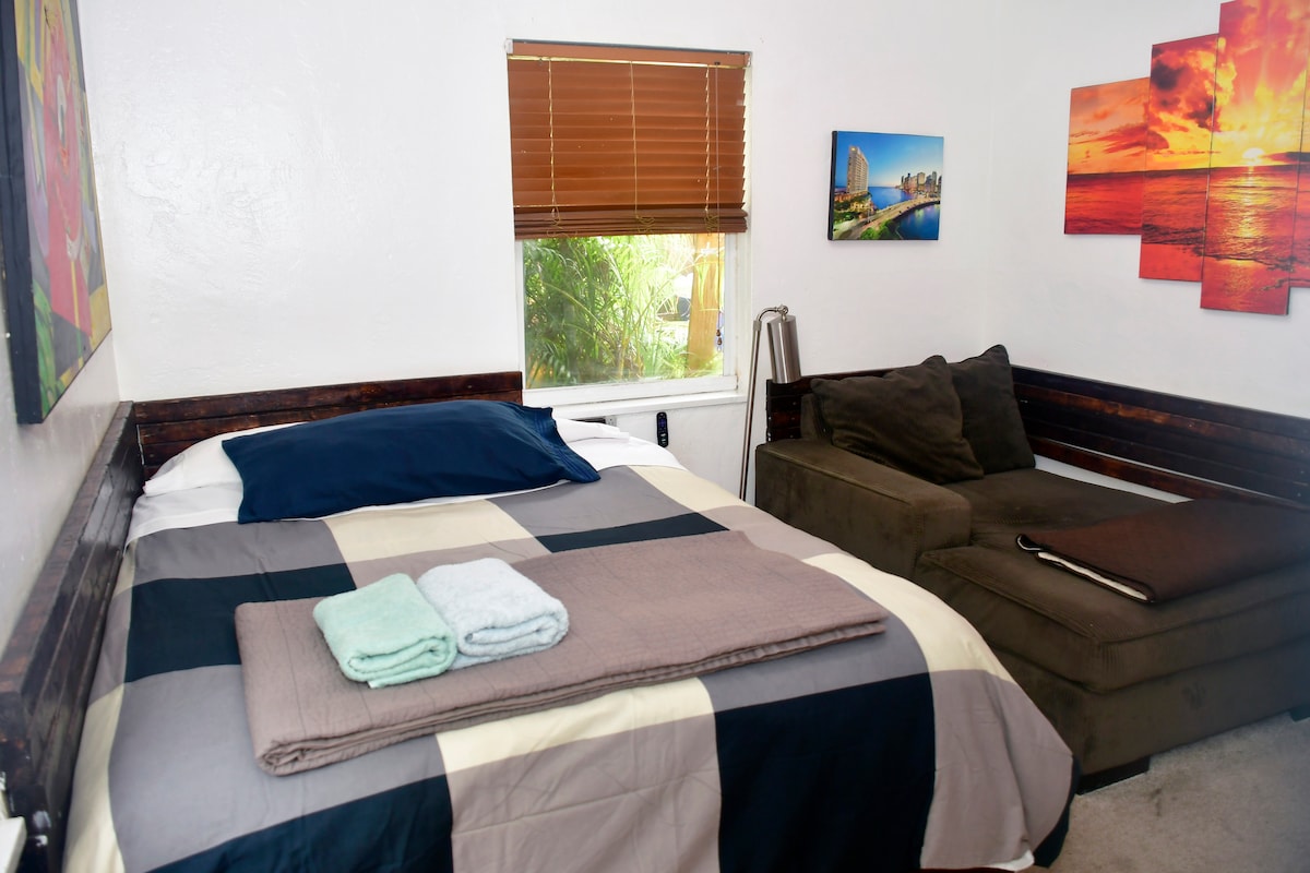 This amazing mini resort has been created with the ultimate comfort of our guests in mind. Enjoy a courtyard and pool deck designed with plenty of outdoor seating and a tiki hut. The property has synthetic grass through out, perfect for kids and family to sit and play on. Super fast Wifi. USB ports in the bedroom. Super comfortable bed. Smart Tv that you can Stream your favorite movies to. Washer/Dryer combo. Outdoor BBQ. Our home is located Minutes from downtown and Hollywood beach/ boardwalk.