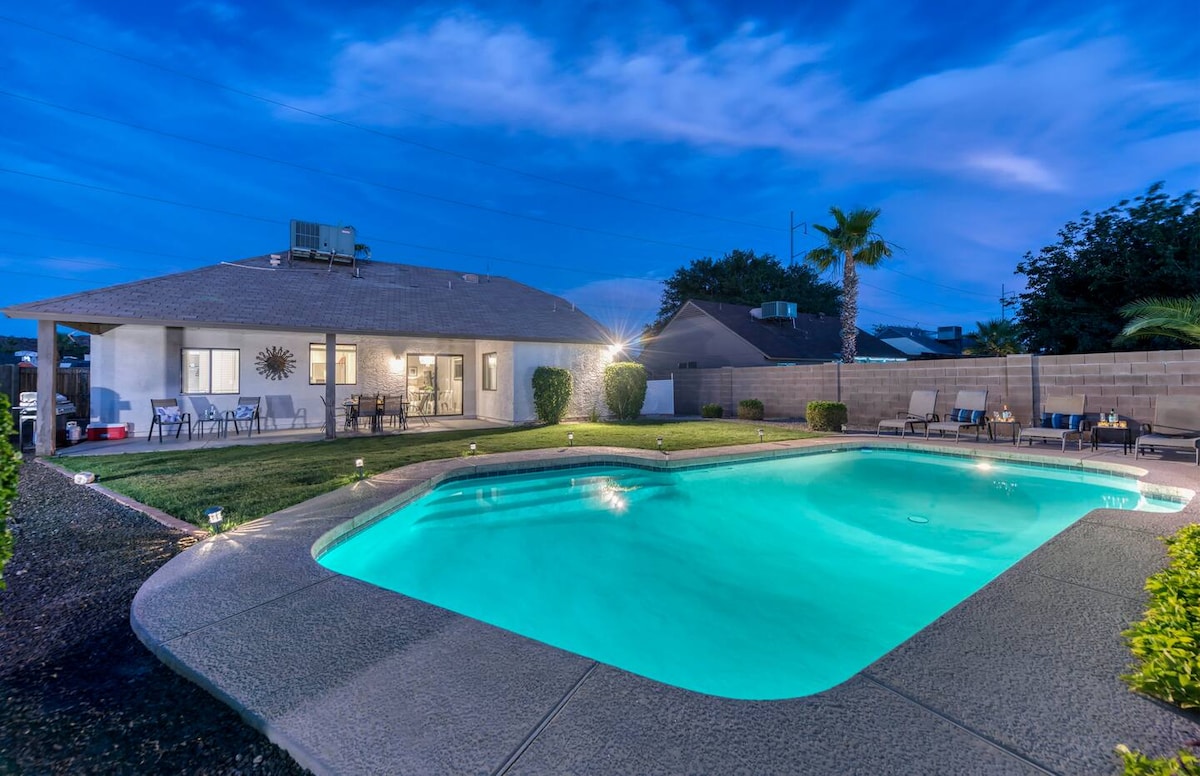🏊 Year-round relaxation in heated saltwater pool (gentle on skin/eyes) 🔥 Cozy up by 4 outdoor gas fire features 🍖 Grill for groups at outdoor BBQ/kitchen 🛋️ Warm ambiance from indoor gas fireplace 🍳 Fully stocked kitchen with everything needed ✨ Tasteful design with high-end finishes/fixtures So much to enjoy, you won't want to leave! But if you do: 20 min from Sky Harbor, Scottsdale & top golf like Lookout Mountain. Resort-like feel in quiet N Central Phoenix – ideal family / golf retreat