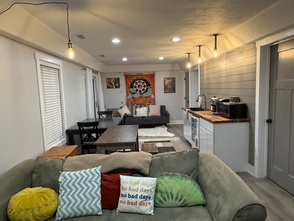 The Huckleberry Inn is thoughtfully designed with earthy tones, natural textures and cozy touches that create a warm and inviting atmosphere. Whether you're curling up with a book, sipping on some morning coffee, or soaking up the afternoon sun; this space invites you to unwind! Located in the quiet neighborhood of Roosevelt Park and minutes from Lake Michigan Beaches, Downtown Muskegon, local markets, and scenic nature trails - this boho retreat is a perfect blend of serenity and adventure.