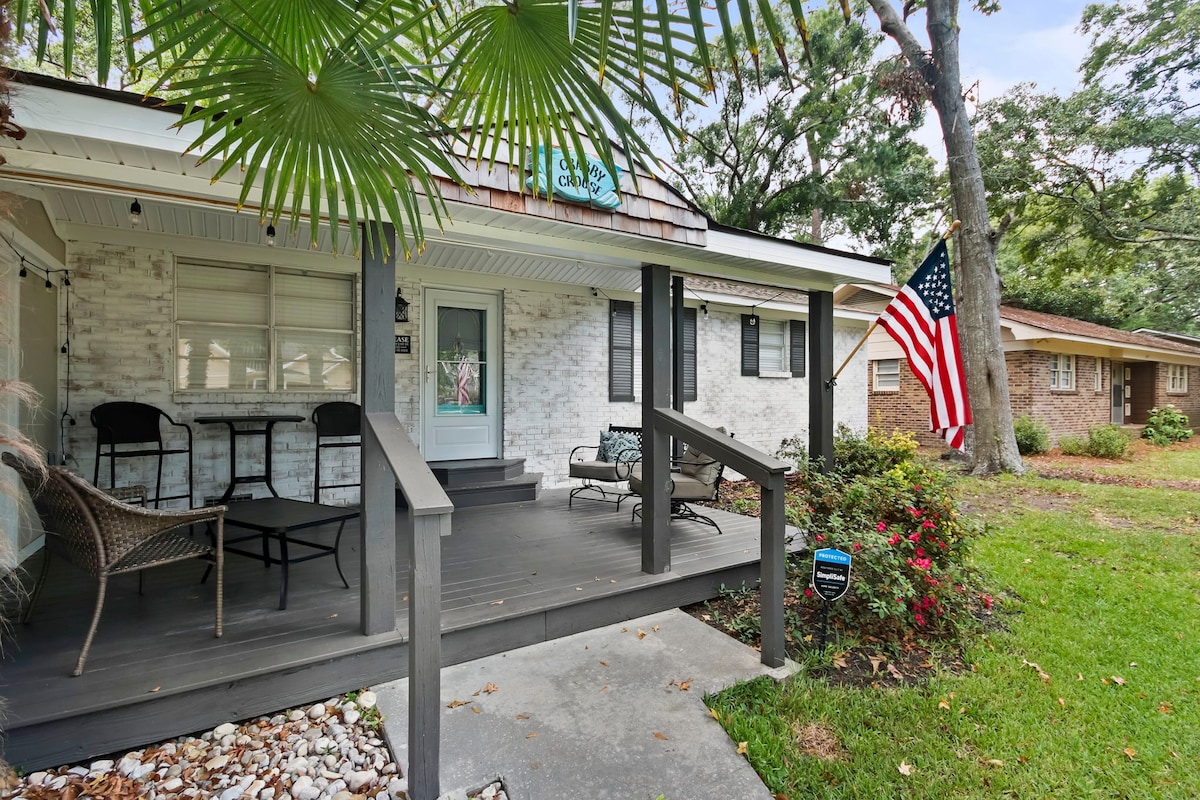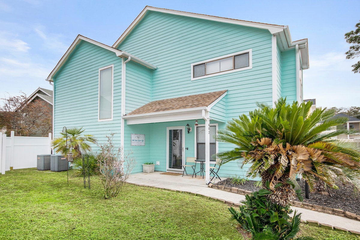 Totally Beaching - Unit #2 is one of 4 spacious condos located a block from the beach & 2 blocks from the fishing pier in the heart of historic Cherry Grove. Each unit is 900sf with 2 bedrooms, one bath, full kitchen and living room with front and rear porch access. The rear porch overlooks a natural pond teeming with wading birds and other wildlife. Guests are provided the essentials: bed linens, towels/bath clothes, cookware, and keurig coffee maker. Unit #2 is on the 2nd level right.