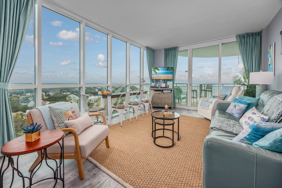 Fall and winter is still a great time to book a vacation! So many things to do, activities, live entertainment, Christmas decorations and fire works. Our condo has it all! Two balconies to view panoramic views of the beach, one in the front of the condo to see the sunrise, one on the side to see city views of North Myrtle Beach and the sunset! Complete with high top table and chairs to admire the views! Corner unit so no side unit to obstruct your views.