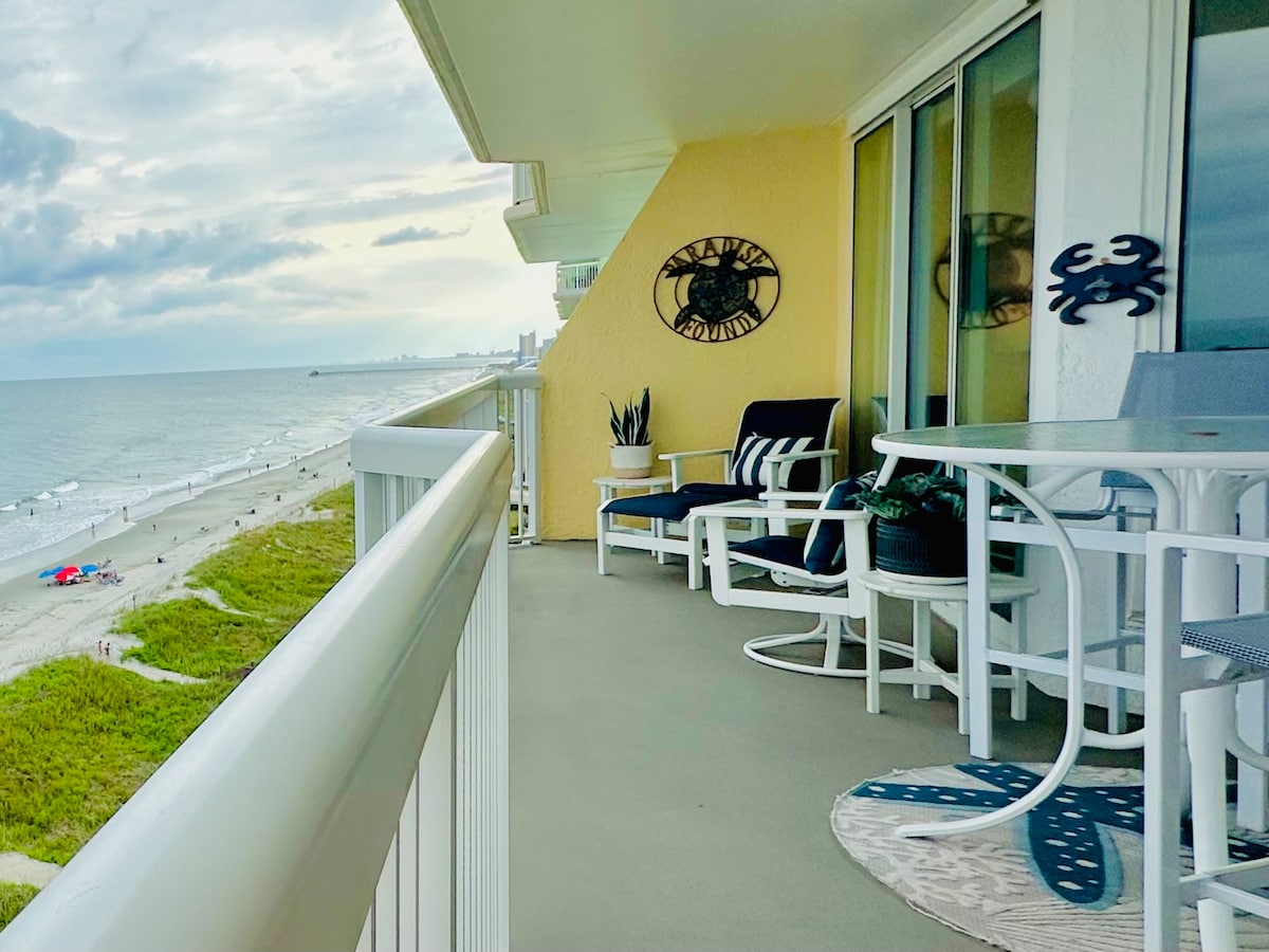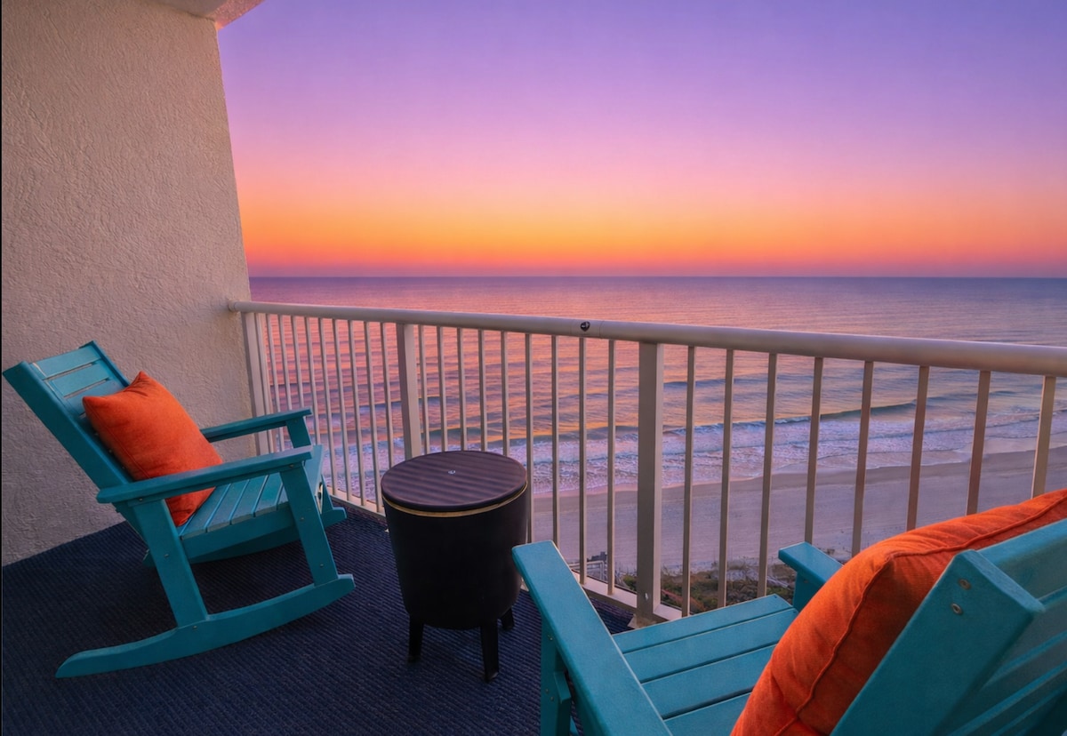 Relax, rejuvenate and be invigorated going into 2026. Enjoy the quiet time of January, walks along the beach, enjoy all the restaurants, golf, shopping, so many things to do without the crowds. Our condo has it all! Two balconies to view panoramic views of the beach, one in the front of the condo to see the sunrise, one on the side to see city views of North Myrtle Beach and the sunset! Complete with high top table and chairs to admire the views! Corner unit with unobstructed views!