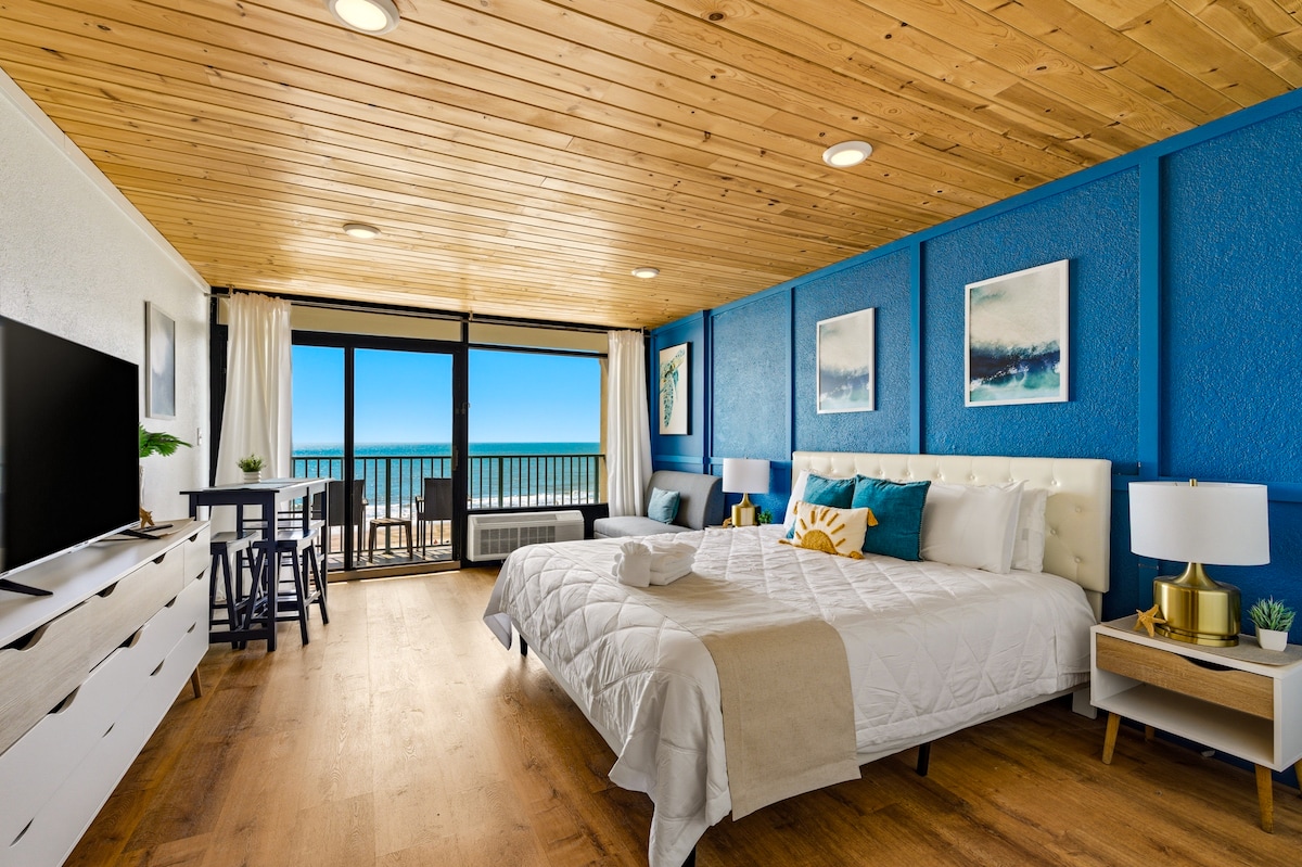 Relax with sweeping ocean views and an easygoing space designed to help you unwind. Enjoy your private balcony, simple comforts, and Seawatch’s pools just steps away. • 🌊 Oceanfront views that instantly slow you down • 🌅 Private balcony for morning coffee and quiet evenings • 🛏 Comfortable king bed with soft linens for restful, uninterrupted sleep • 🛋 Relaxed living space that feels easy, open, and uncluttered • 🍳 Fully equipped kitchen for simple meals and stress-free mornings • 📺 Smart