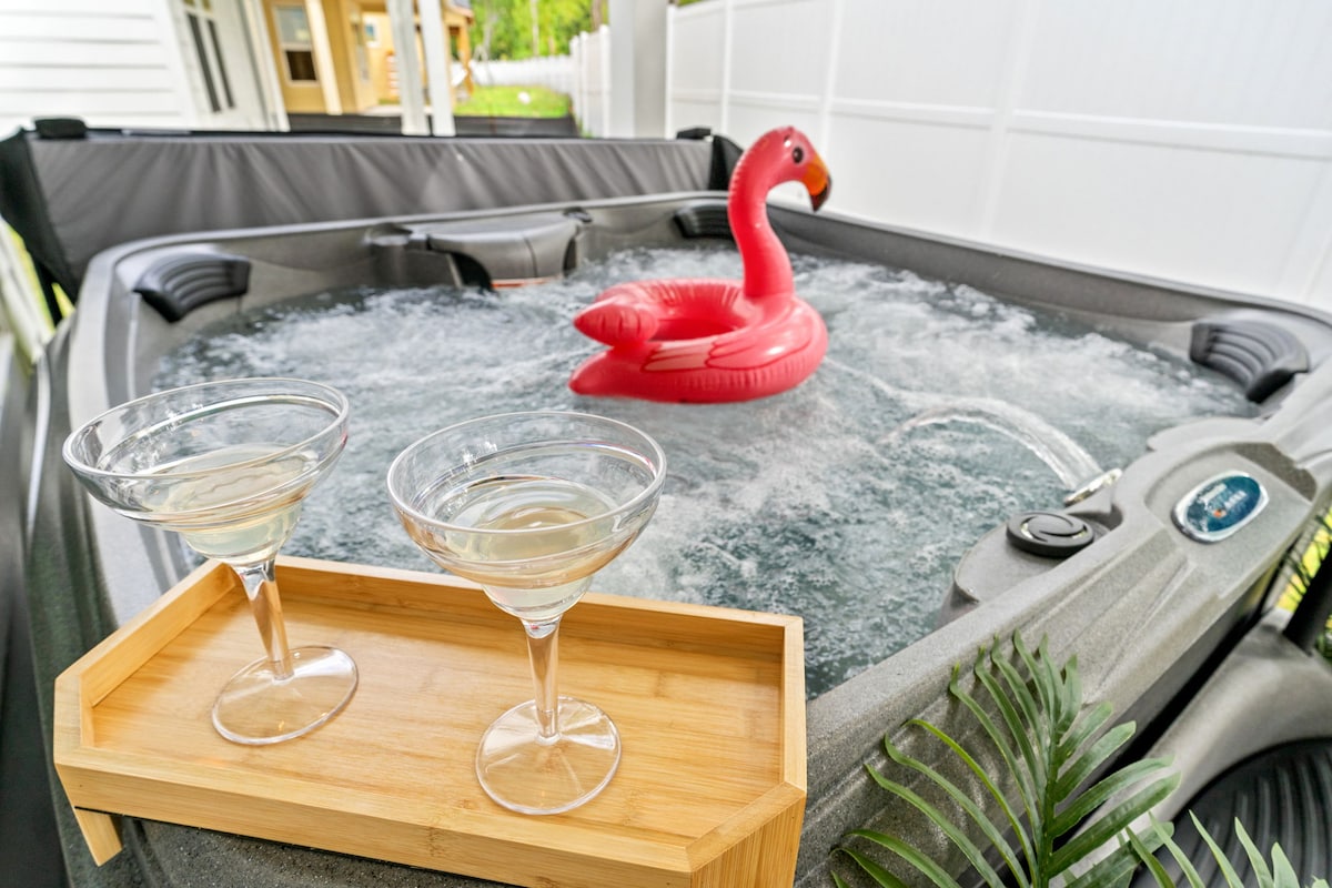 Step into a bright, stylish space designed for memorable stays. The fully equipped kitchen makes cooking a breeze, whether you’re prepping a beach-day breakfast or a cozy family dinner. Unwind in your private hot tub after a day in the sun, or head to the game room for friendly competition and endless fun. The kid-friendly backyard offers a safe and inviting space for little ones to play while adults relax.