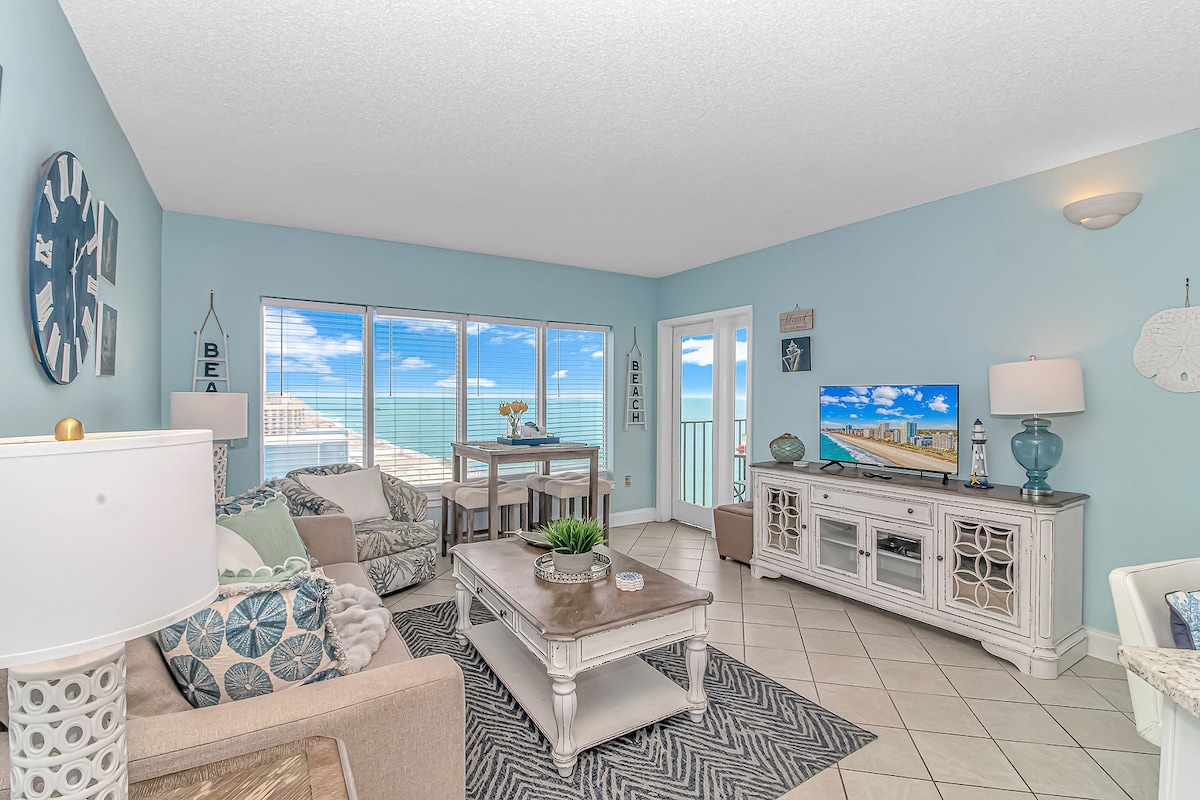 Direct Oceanfront Balcony Unit 16th floor. Must be 23+ years old to rent per HOA. New reno Keyless entry. King bedroom unit sleep 6. 2 beach chairs & umbrella for guest use. King bed & futon option (child), double Murphy & sofa sleeper, upgraded mattresses. Full sized appliances. PoolsideTiki bar, restaurants, indoor/outdoor lazy rivers, hot tubs, pools, kiddie pools and water features through-out. Free parking, internet, Fire stick & ability to log onto streaming service available.